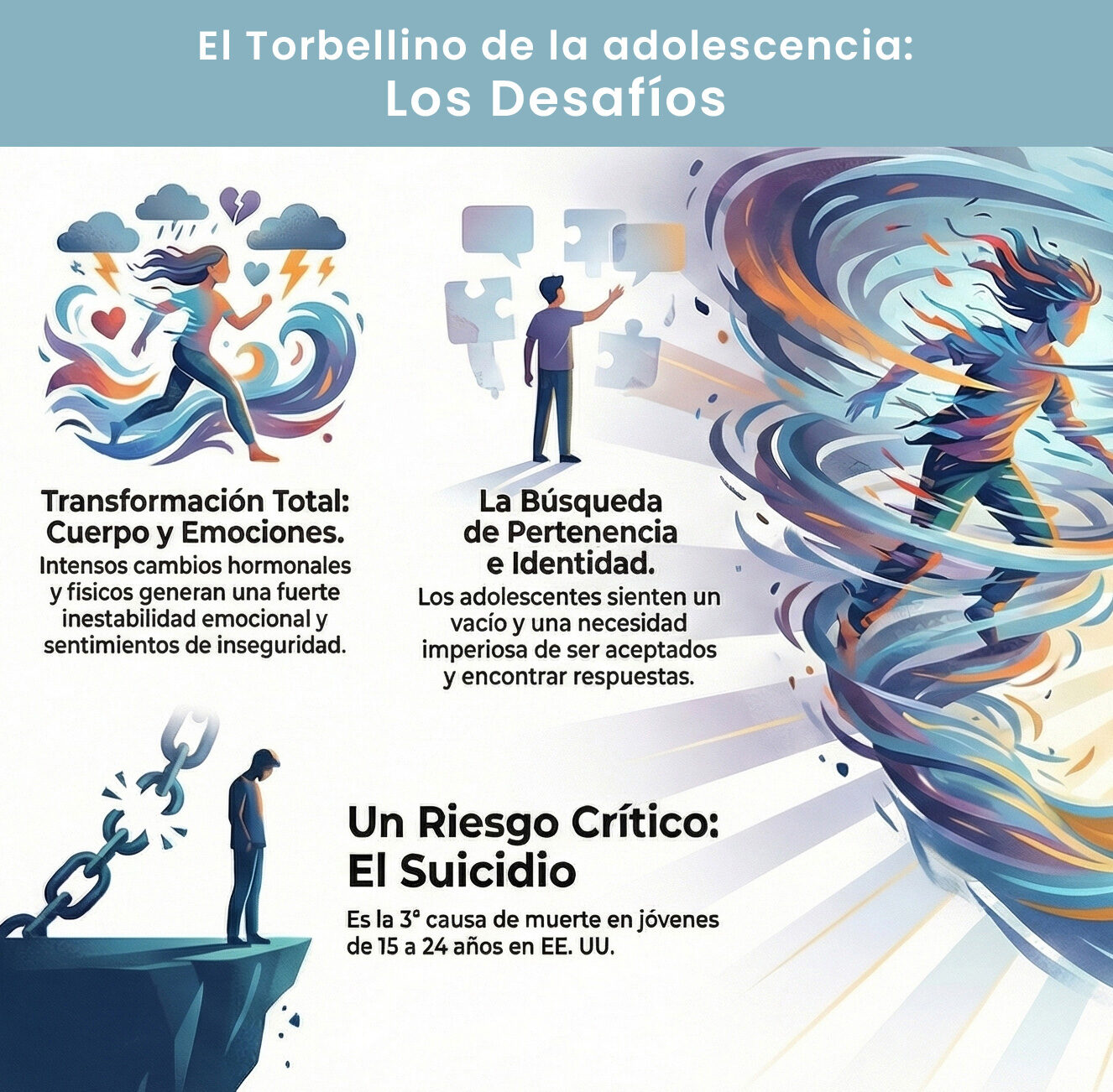 Los adolescentes comparten características comunes; aunque cada adolescente vive un proceso de manera única. Durante este periodo, los cambios físicos, emocionales y psicológicos son intensos; sin embargo, hay un área muchas veces olvidada, la espiritual.